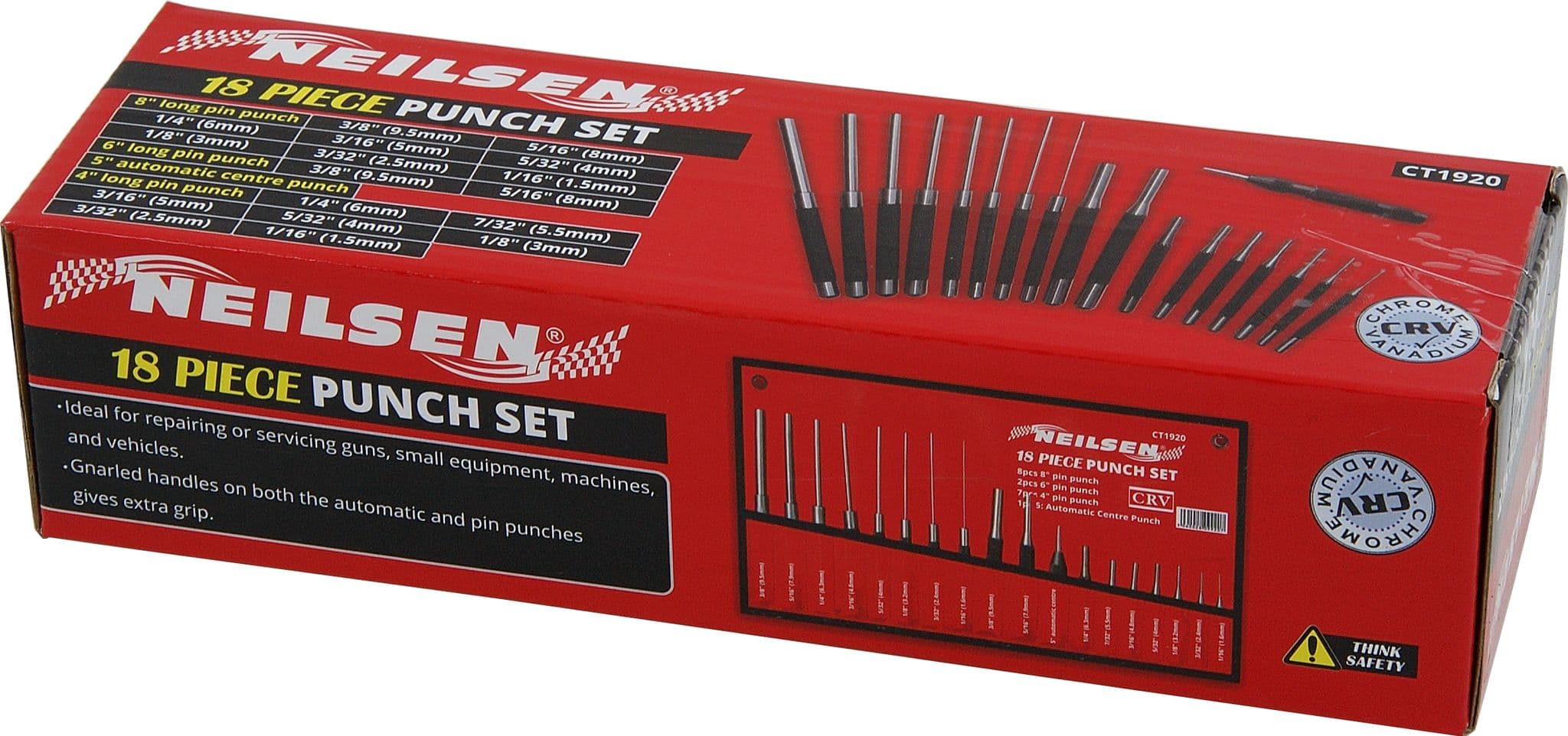 18Pc Parallel Pin Punch Tool Set And Automatic Centre Punch 1.5mm To 9.5mm