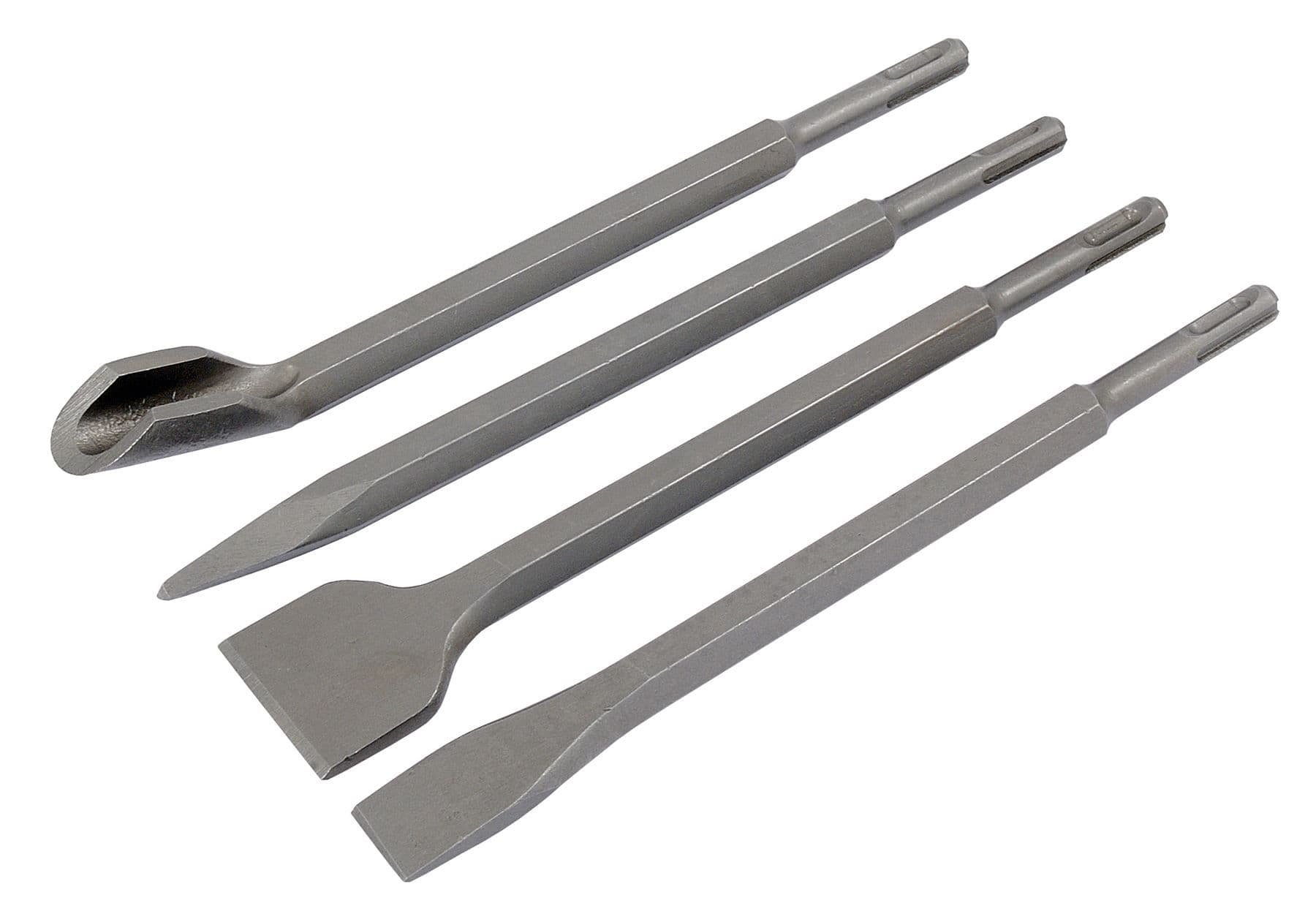 4 Piece Sds Chisel Set For Hammer Drill Flat Pointed Groove Gouge 250mm Masonry