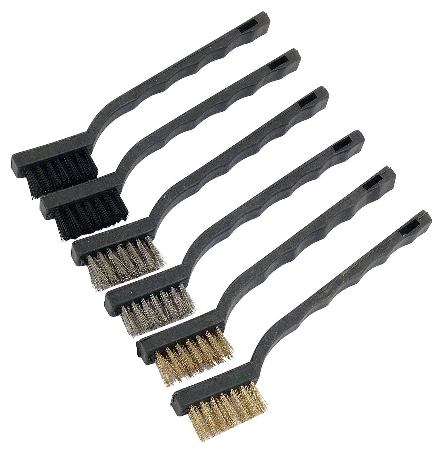 6 Pc Small Wire Brush Set - Steel, Brass & Nylon Heads For Removing Rust & Paint